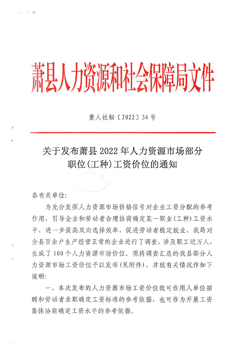 【市场工资指导价位信息】关于发布beat365官方网站正规_365bet注册送奖金_bt365开户2022年人力资源市场部分职位(工种)工资指导价位的通知