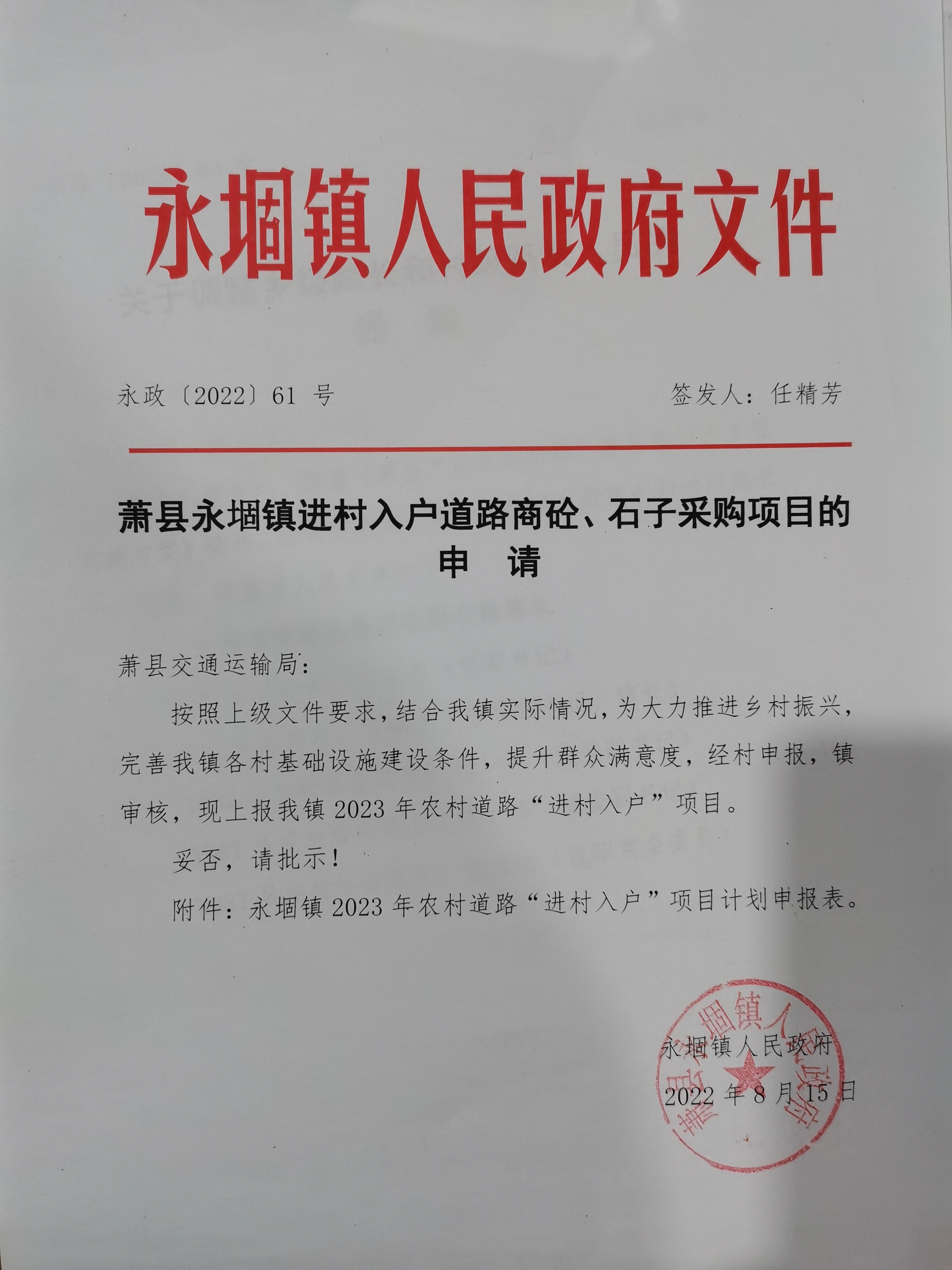 【农村公路建设计划和建设信息】beat365官方网站正规_365bet注册送奖金_bt365开户永堌镇进村入户道路商砼、石子采购项目的申请