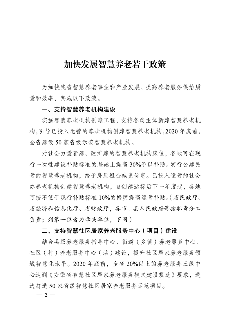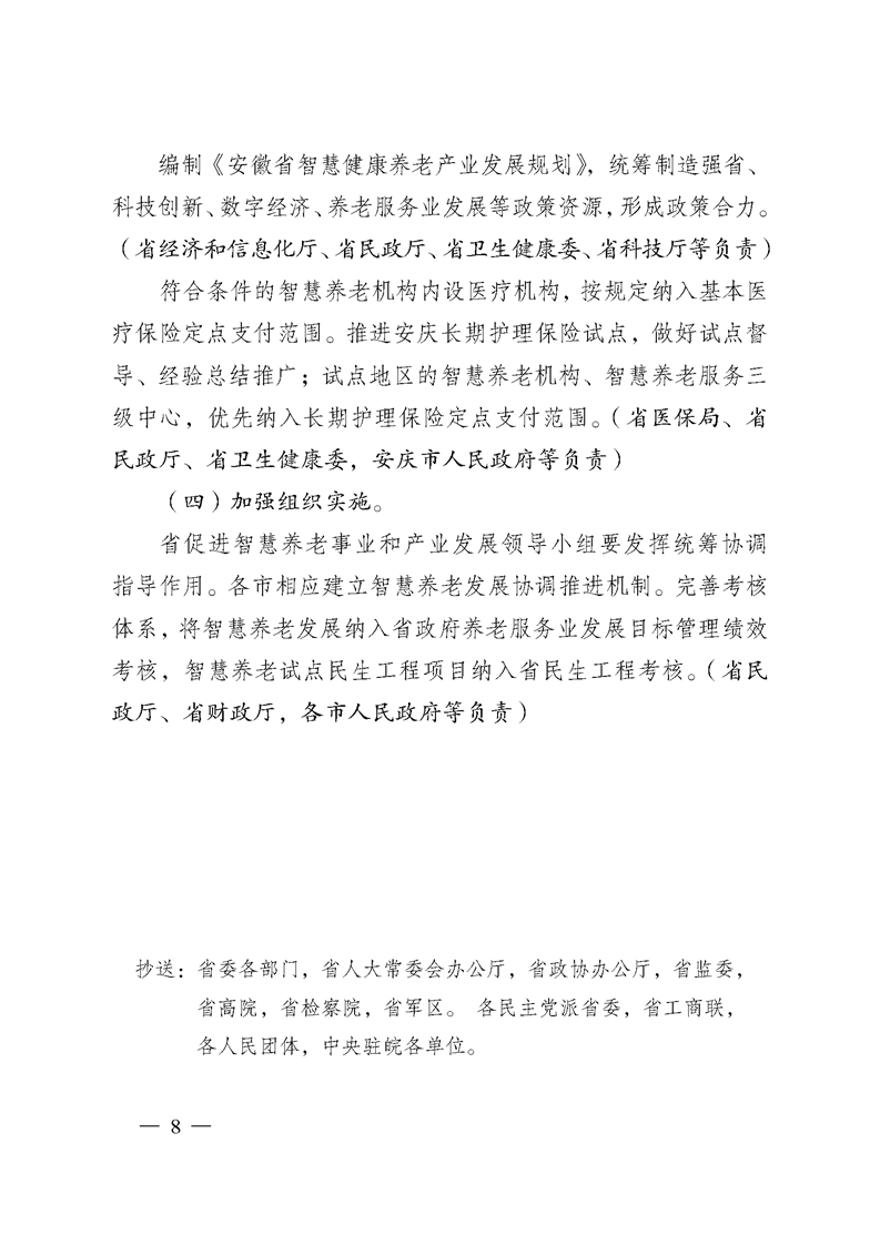 安徽省人民政府办公厅关于印发加快发展智慧养老若干政策的通知