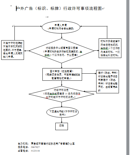 1.申请人备齐申请材料后,通过网络或直接到政务服务中心城管局窗口提交申请材料,窗口工作人员审查申请材料,对申请材料齐全且符合法定形式的,出具《受理通知书》(除即办件);申请材料不齐全或不符合法定形式,网上或当场一次性告知需要补正的全部内容,并出具补齐补正通知书;