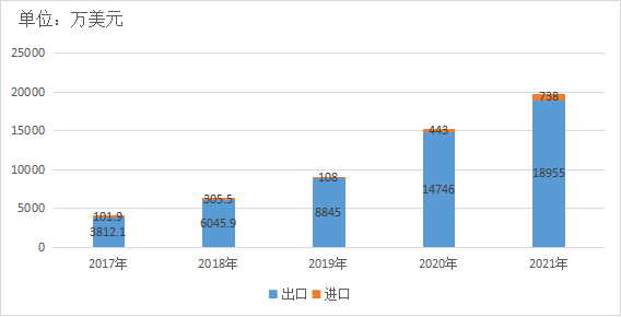 2017-2021年全县进出口额