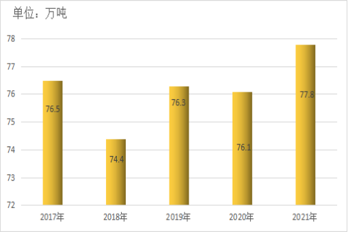 2017—2021年全县粮食产量
