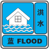 洪水蓝色、黄色、橙色、红色预警信号图标依次为: