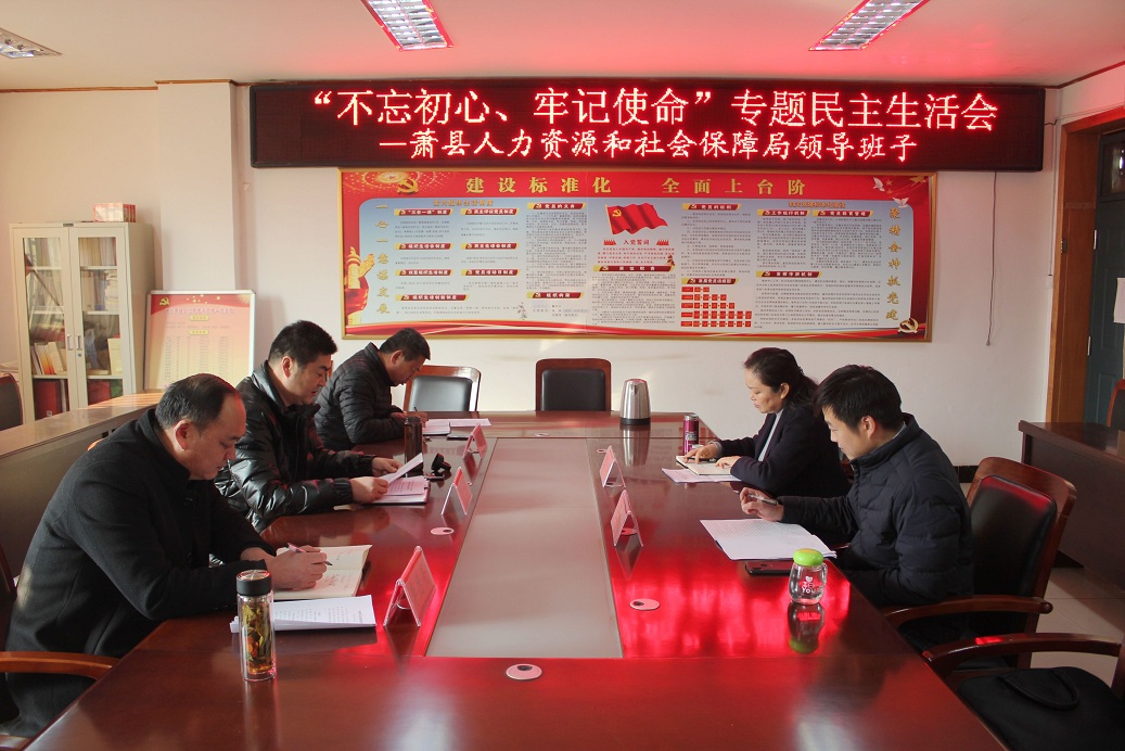 12月6日,县人社局召开领导班子“不忘初心、牢记使命”专题民主生活会,局领导班子全体成员参加,县委主题教育第二巡回指导组副组长吴可、成员王骁出席指导。