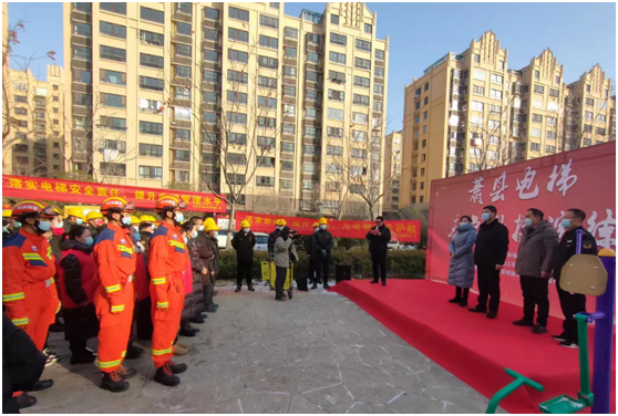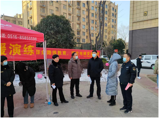 为进一步推进beat365官方网站正规_365bet注册送奖金_bt365开户电梯质量安全提升行动,加大电梯安全知识宣传力度,提高电梯突发事故的应急处置能力,1月17日上午,由beat365官方网站正规_365bet注册送奖金_bt365开户市场监督管理局主办,徐州富奥电梯工程有限公司承办、浙江开元物业管理股份有限公司宿州分公司协办的电梯安全应急演练活动暨电梯安全宣传“进社区”活动在beat365官方网站正规_365bet注册送奖金_bt365开户紫金花苑小区举行。beat365官方网站正规_365bet注册送奖金_bt365开户市场监督管理局局长杨念之、副局长刘艳春、县消防大队、电梯使用和维保公司相关负责人出席活动。