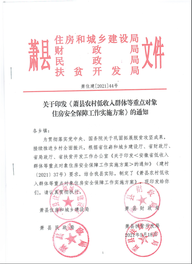 1、落实部门职责。县住房和城乡建设部门负责统筹推进农村危房改造工作,组织编制农村房屋安全性鉴定、建管等政策规定和技术要求并组织实施;县财政部门负责安排农村危房改造补助资金,加强资金使用监管;县民政部门负责认定农村低保户、农村分散供养特困人员、农村低保边缘家庭;县乡村振兴(扶贫)部门会同有关部门负责认定因病因灾因意外事故等刚性支出较大或收入大幅缩减导致基本生活出现严重困难家庭;县乡村振兴(扶贫)部门负责认定农村易返贫致贫户、符合条件的其他脱贫户。