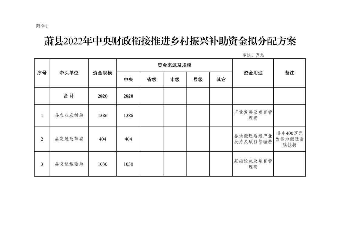 财政专项扶贫资金分配结果