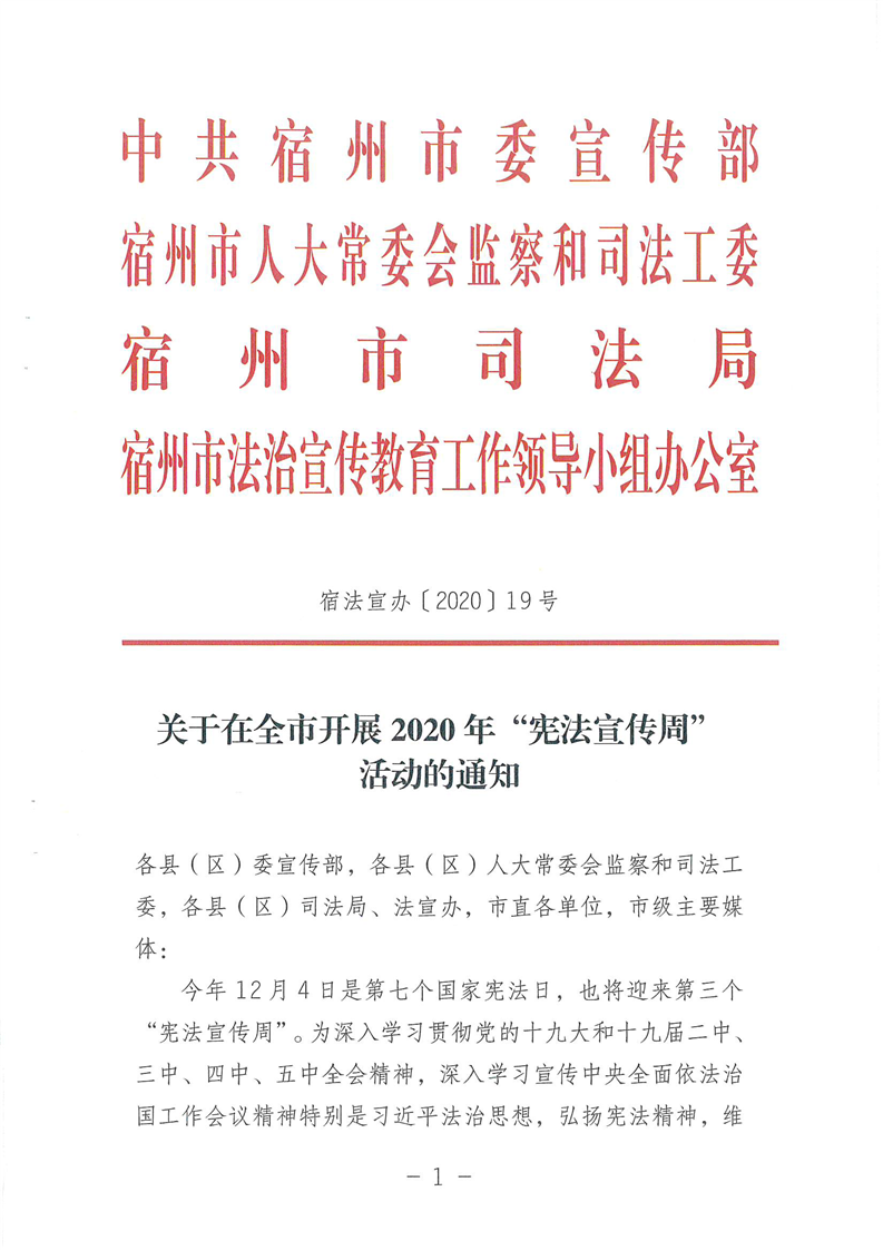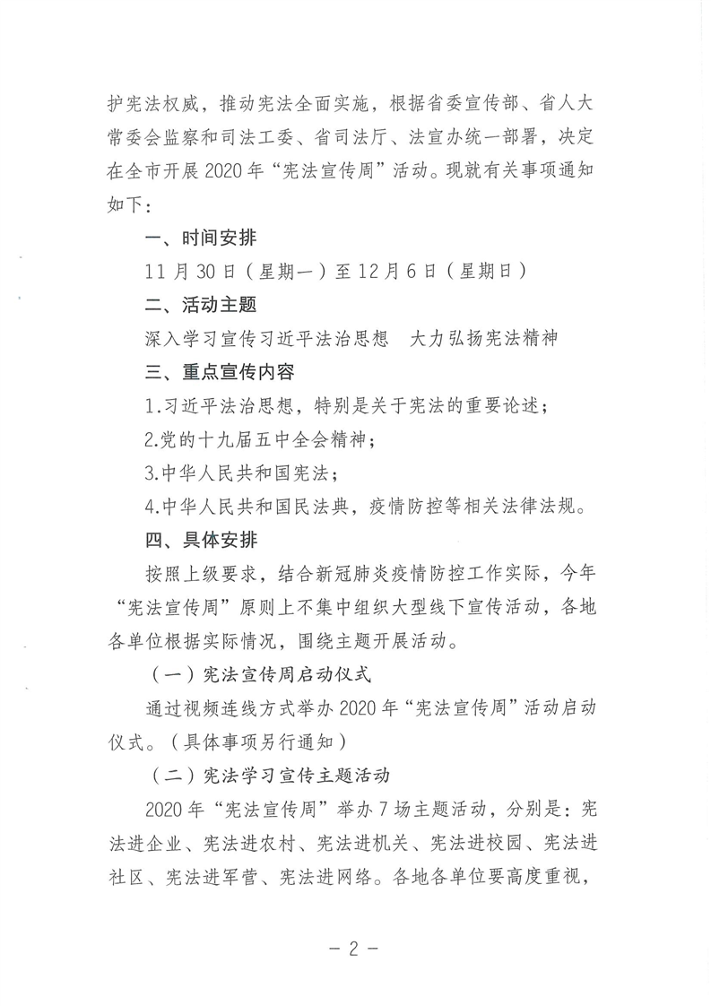 关于在全市开展2020年“宪法宣传周”活动的通知