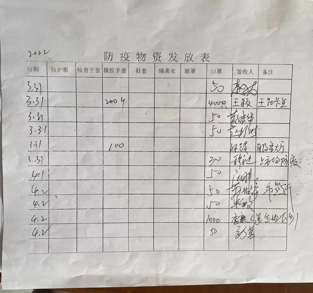 孙圩子镇2022年二季度物资发放情况