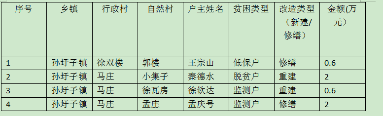 孙圩子镇危房改造成效统计表