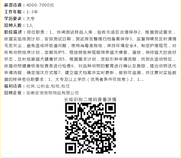 【岗位信息发布】宠物饲喂研究员