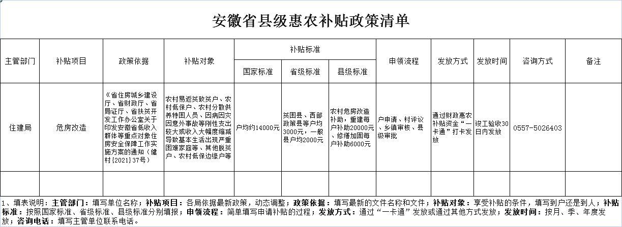 安徽省县级惠农补贴政策清单