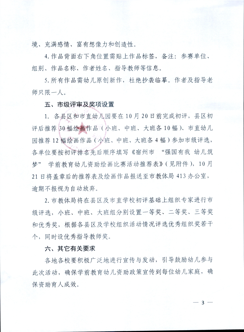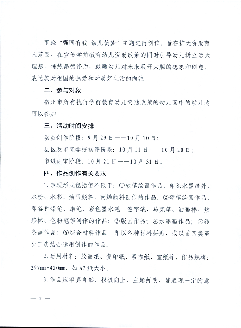 【学生评优奖励】关于开展宿州市“强国有我幼儿筑梦”学前教育幼儿资助绘画比赛活动的通知