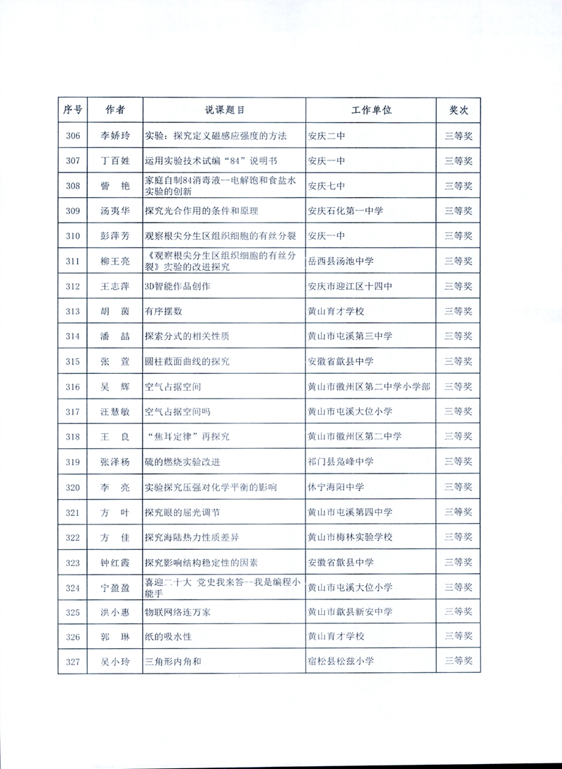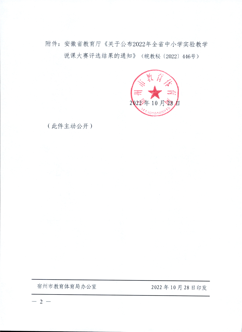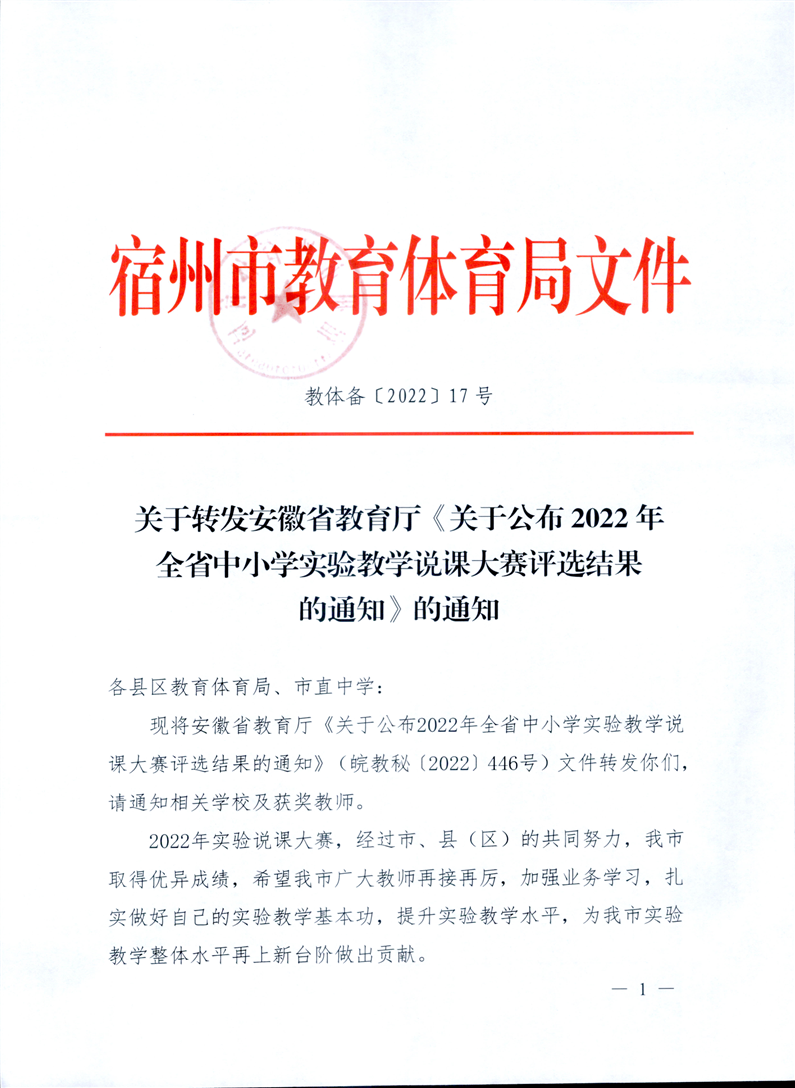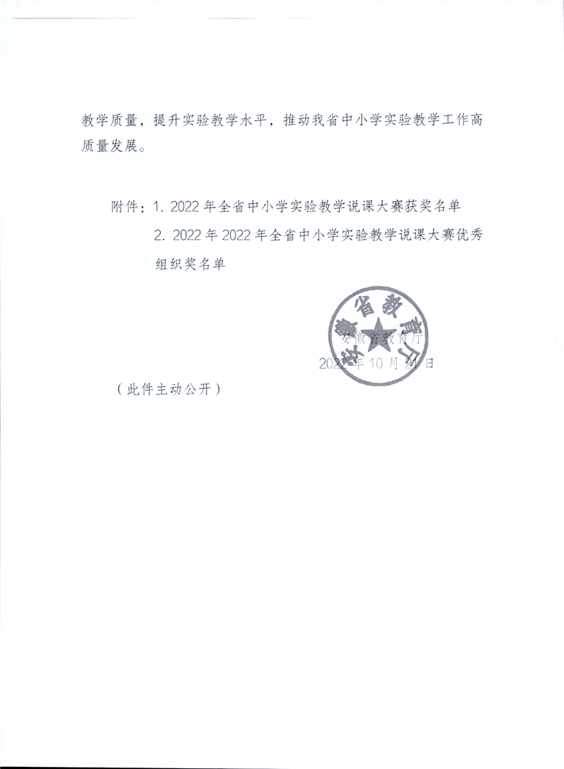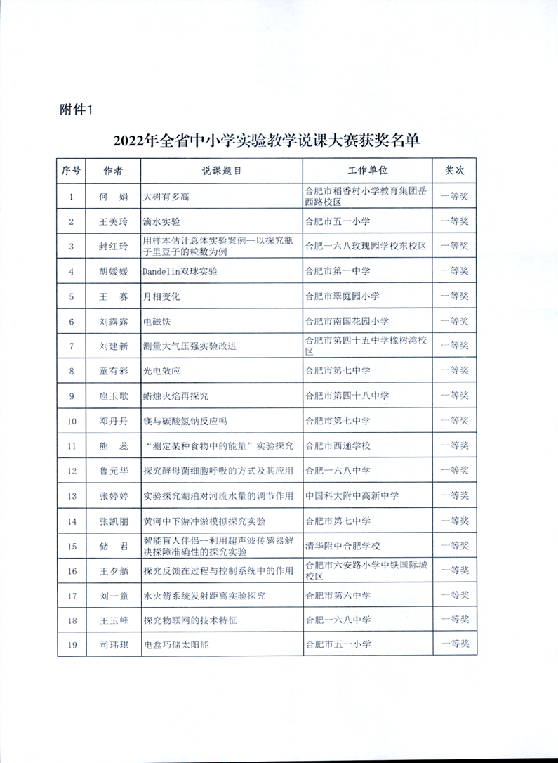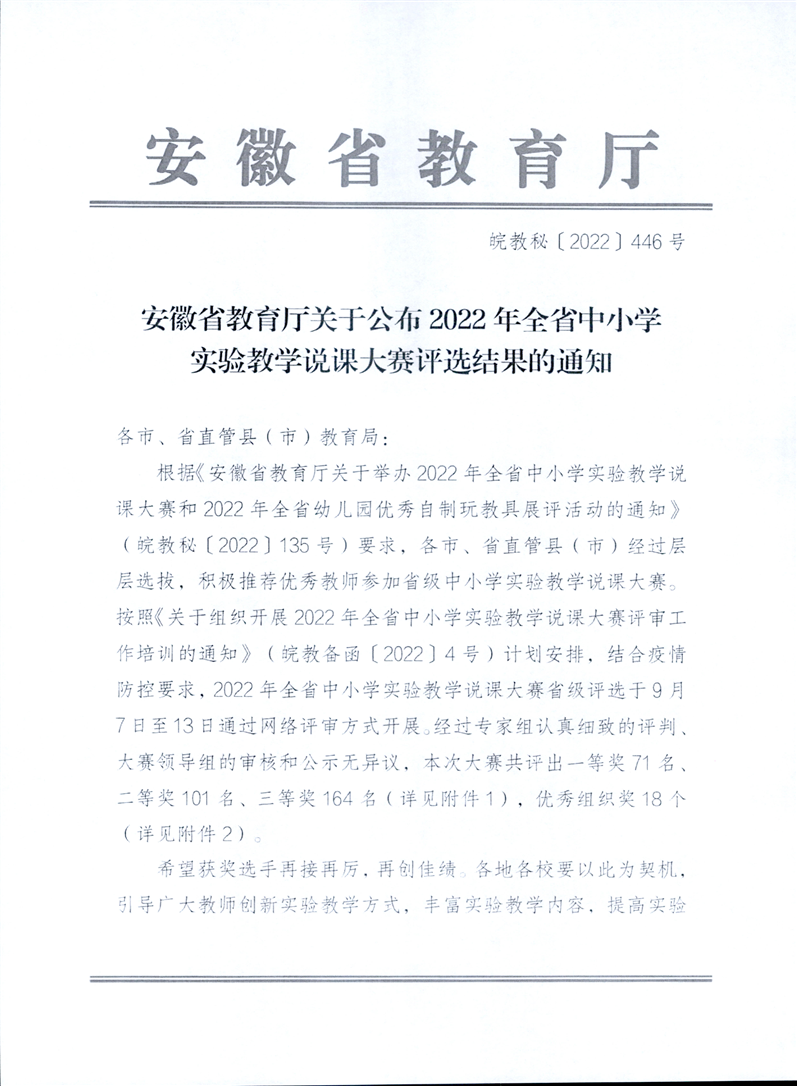 【教师评优评先】关于转发安徽省教育厅《关于公布2022年全省中小学实验教学说课大赛评选结果的通知》的通知