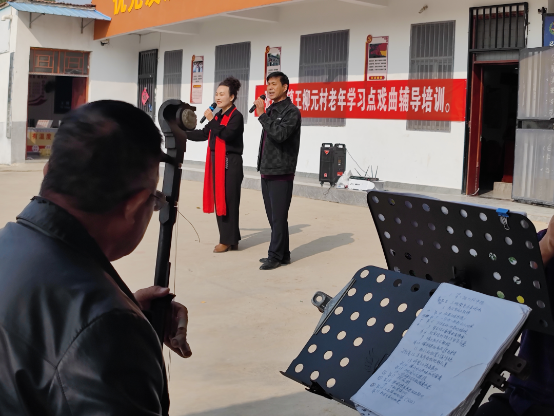 10月29日上午,张庄寨镇王柳元村委会里热闹非凡,一群热爱戏曲的老年人正津津有味地聆听授课老师的精彩教学,时不时传来的喝彩声,让活动充满了欢乐。