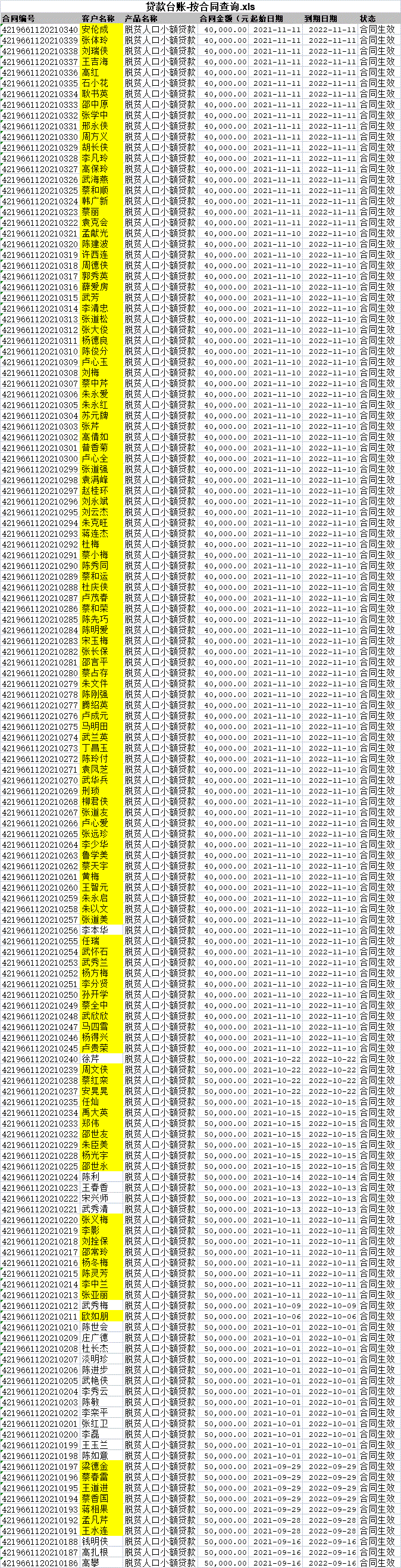 庄里脱贫人员贷款清单