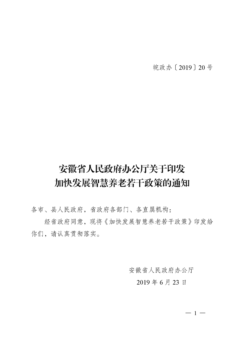 安徽省人民政府办公厅关于印发加快发展智慧养老若干政策的通知
