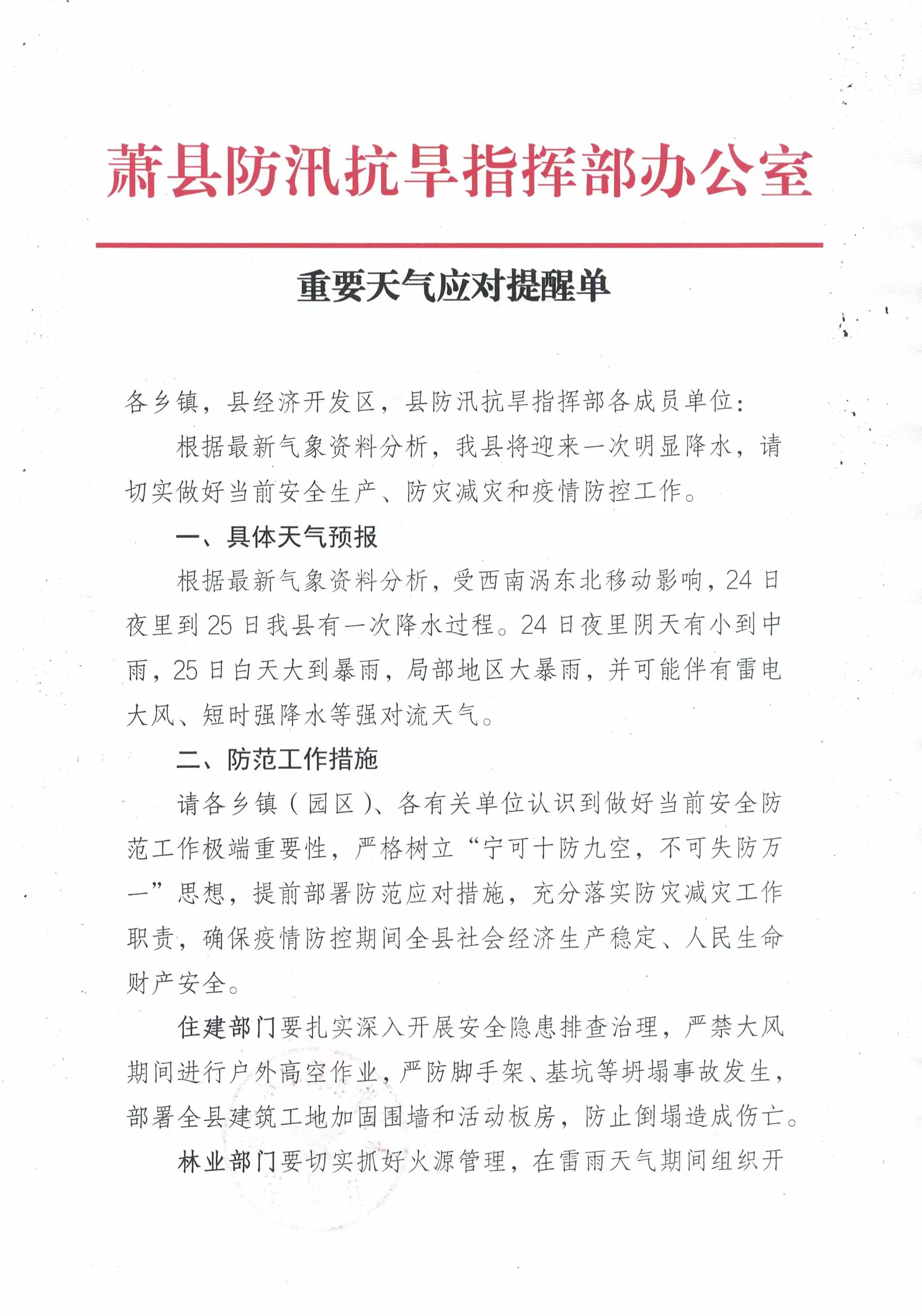 重要天气应对提醒单