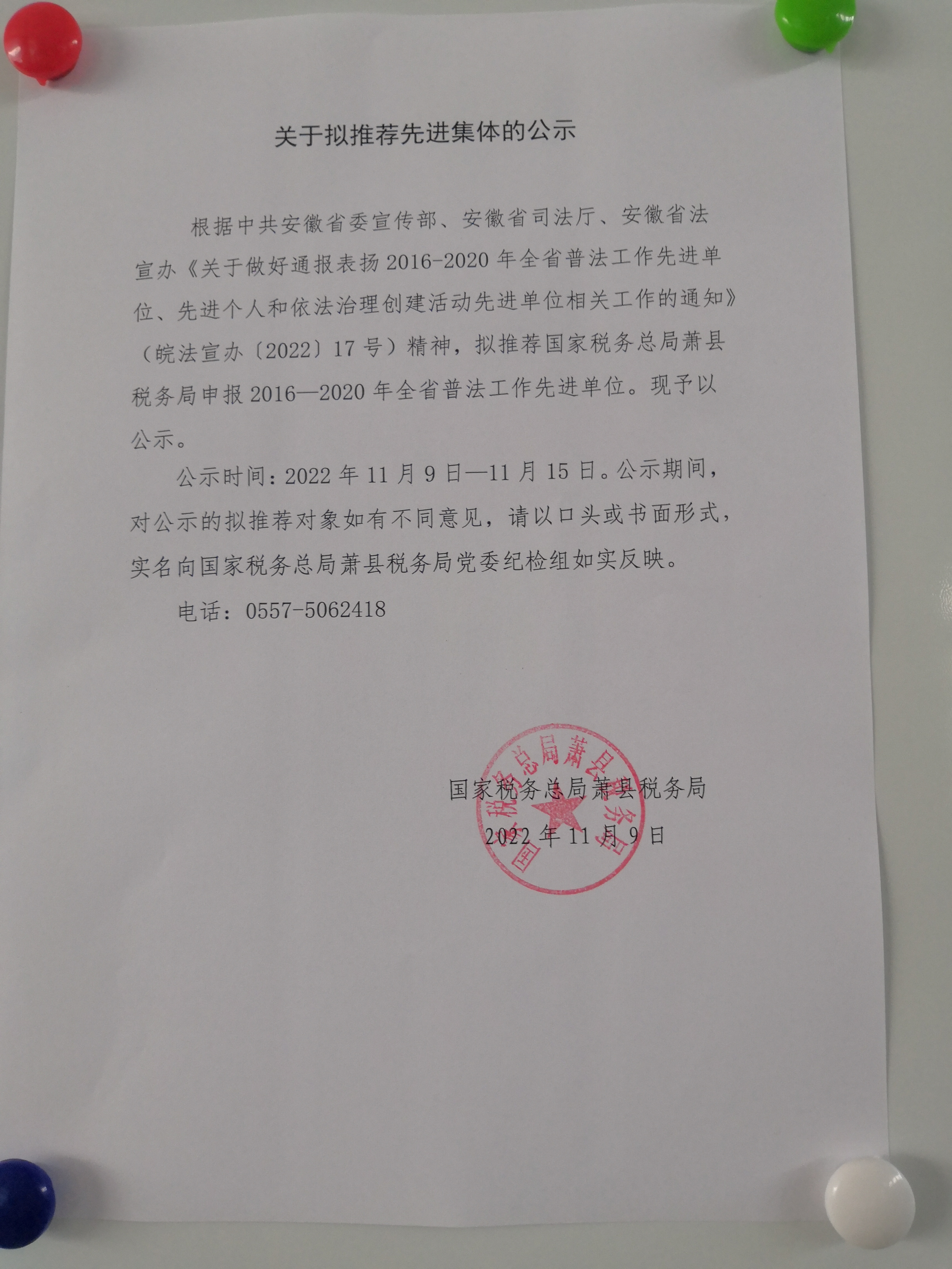 关于拟推荐2016-2020年全省普法工作先进单位的公示