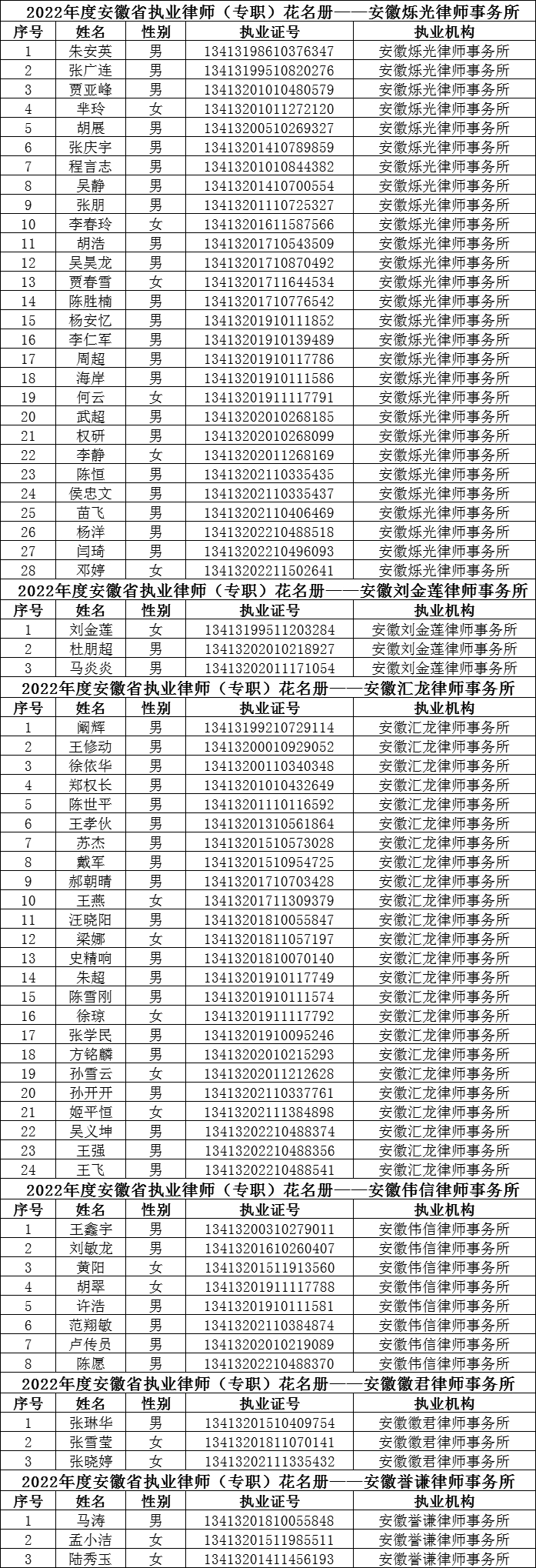 2022年度beat365官方网站正规_365bet注册送奖金_bt365开户执业律师(专职)花名册