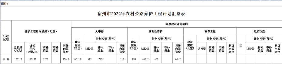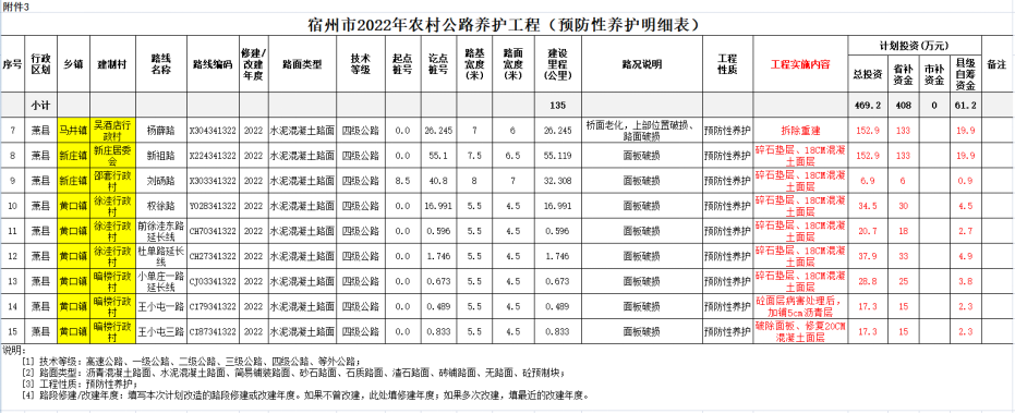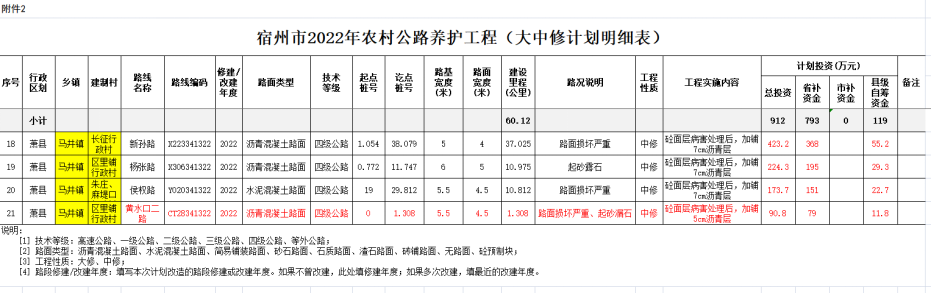宿州市2022年农村公路养护工程(大中修计划明细表)