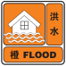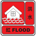 洪水蓝色、黄色、橙色、红色预警信号图标依次为:
