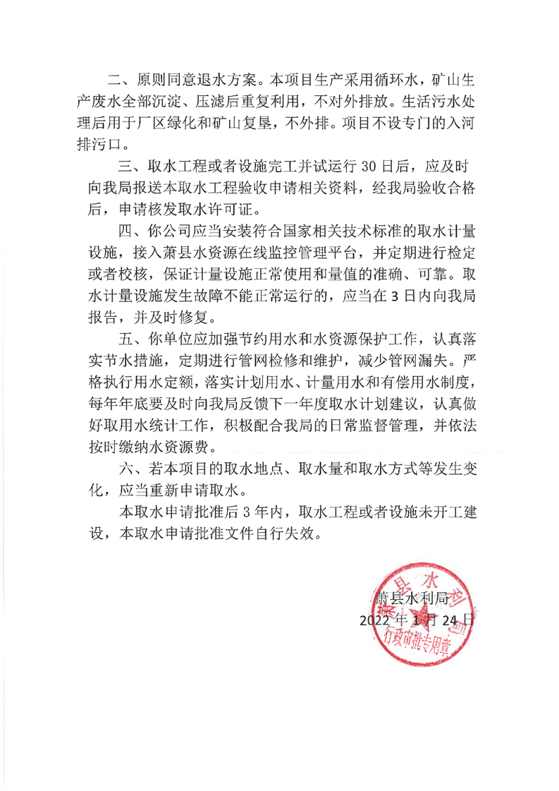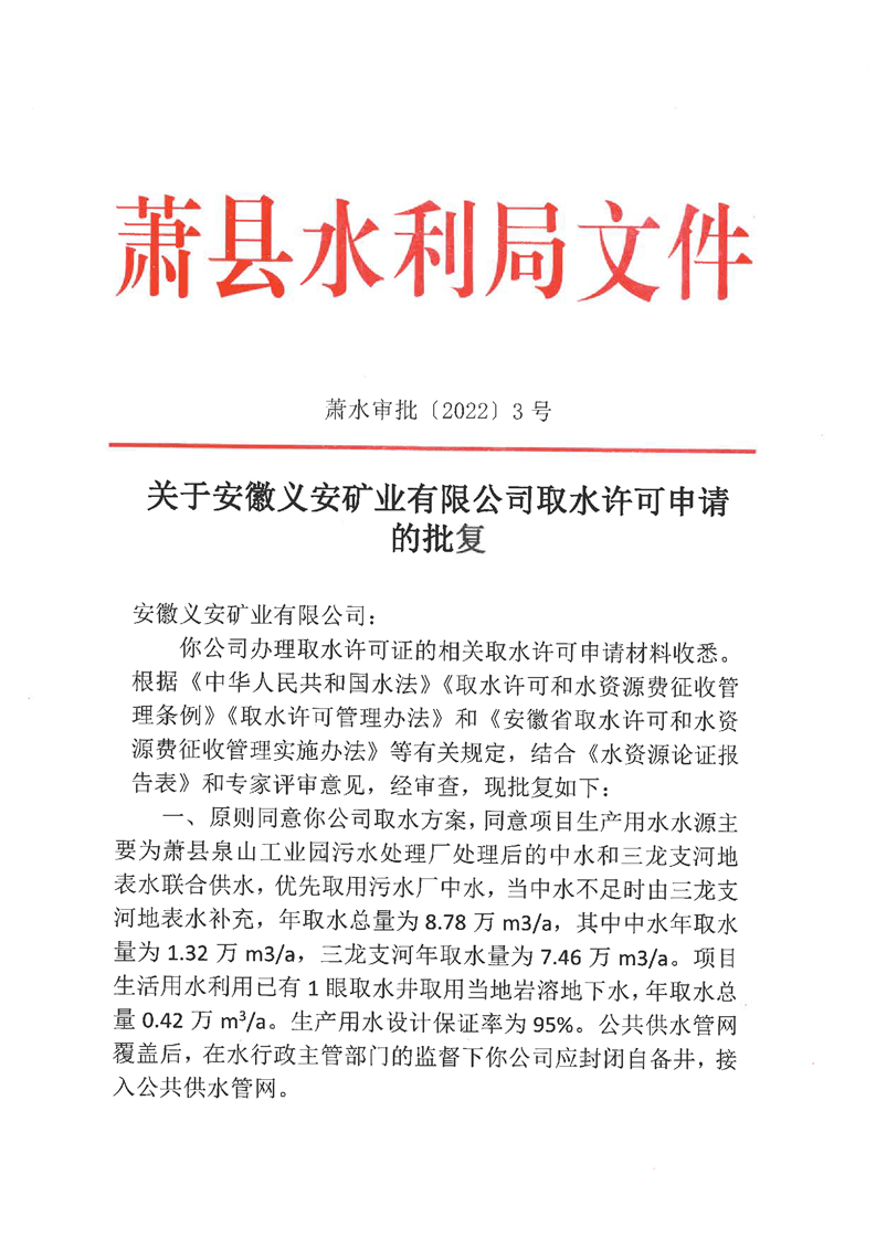 关于安徽义安矿业有限公司取水许可申请的批复 |