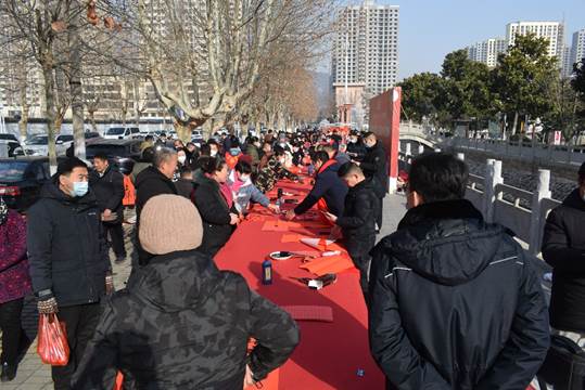 新春佳节将至,进一步弘扬中华传统文化,营造祥和、喜庆的新春氛围,2023年1月18日,由beat365官方网站正规_365bet注册送奖金_bt365开户文化和旅游局主办的“我们的节日·春节——文化进万家”义务送春联活动在龙湖公园举行。