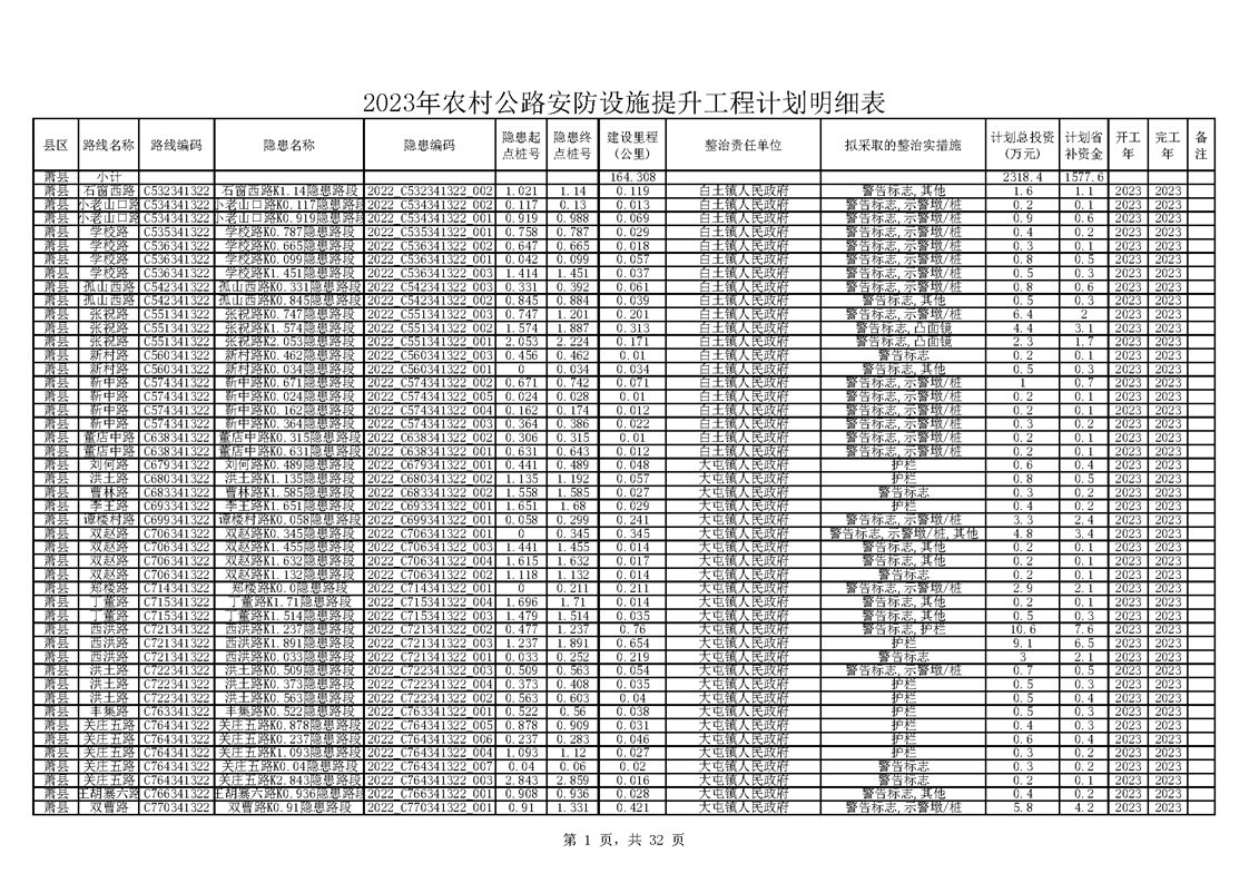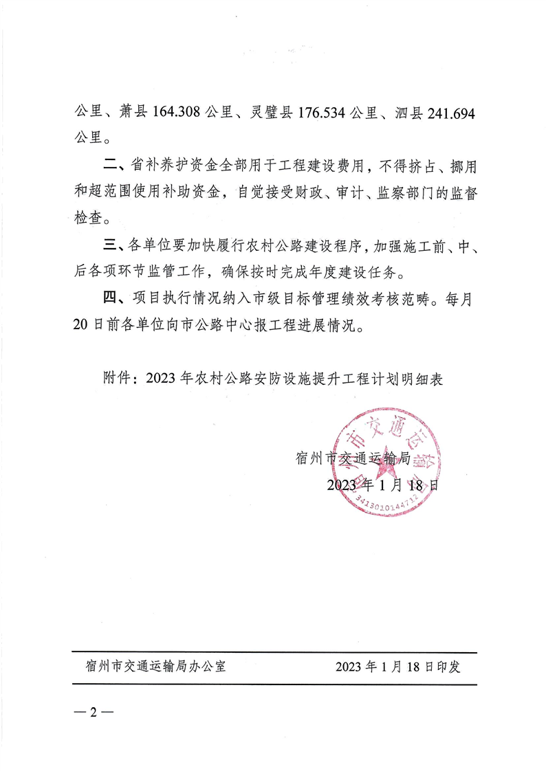 宿州市交通运输局关于下达2023年农村公路养护工程(第二批)建设计划的通知