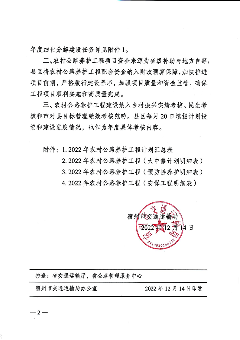 宿州市交通运输局关于下达2023年农村公路养护工程建设计划的通知 |