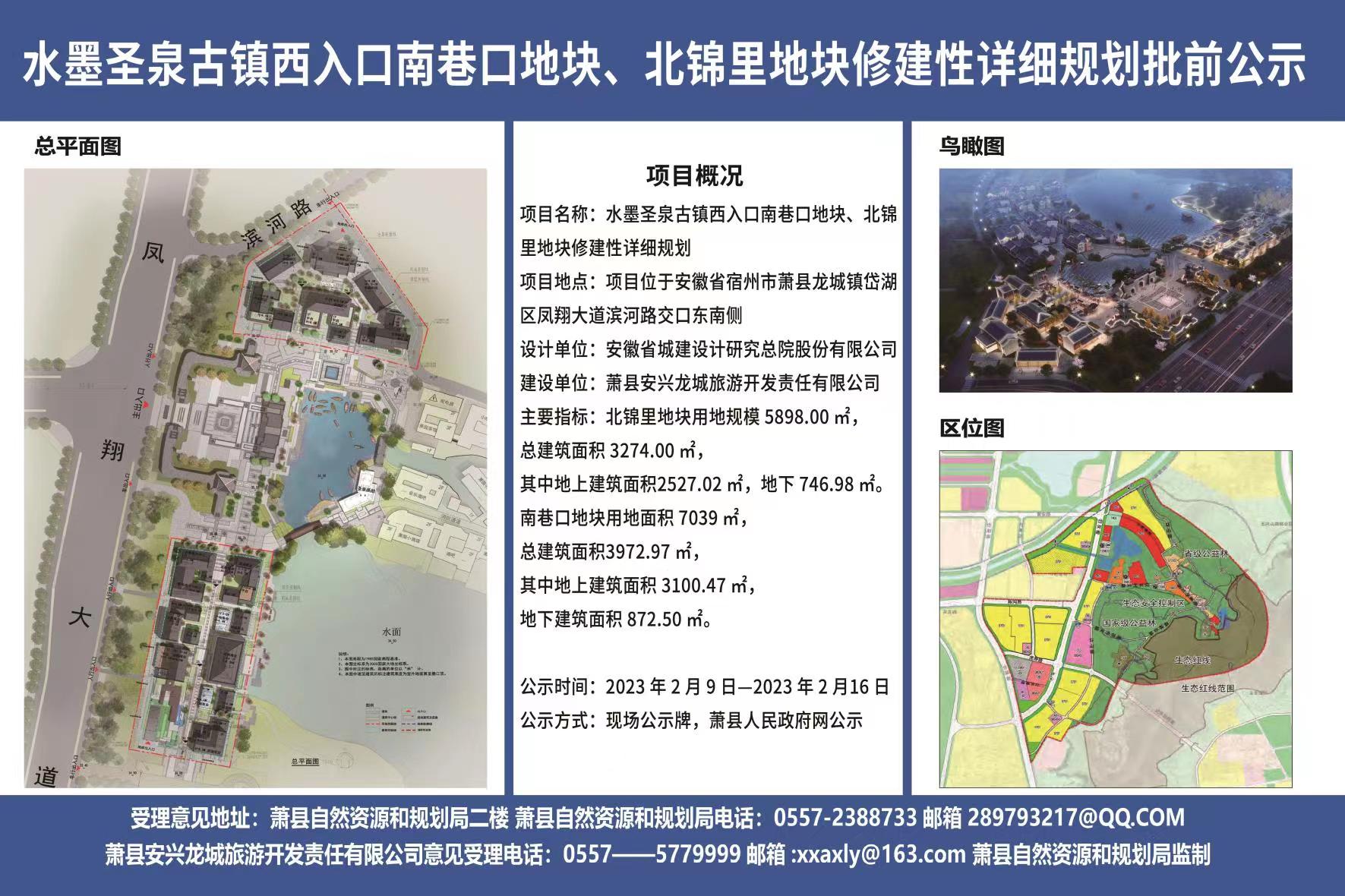 水墨圣泉古镇西出入口南巷口地块、北锦里地块修建性详细规划批前公示 |