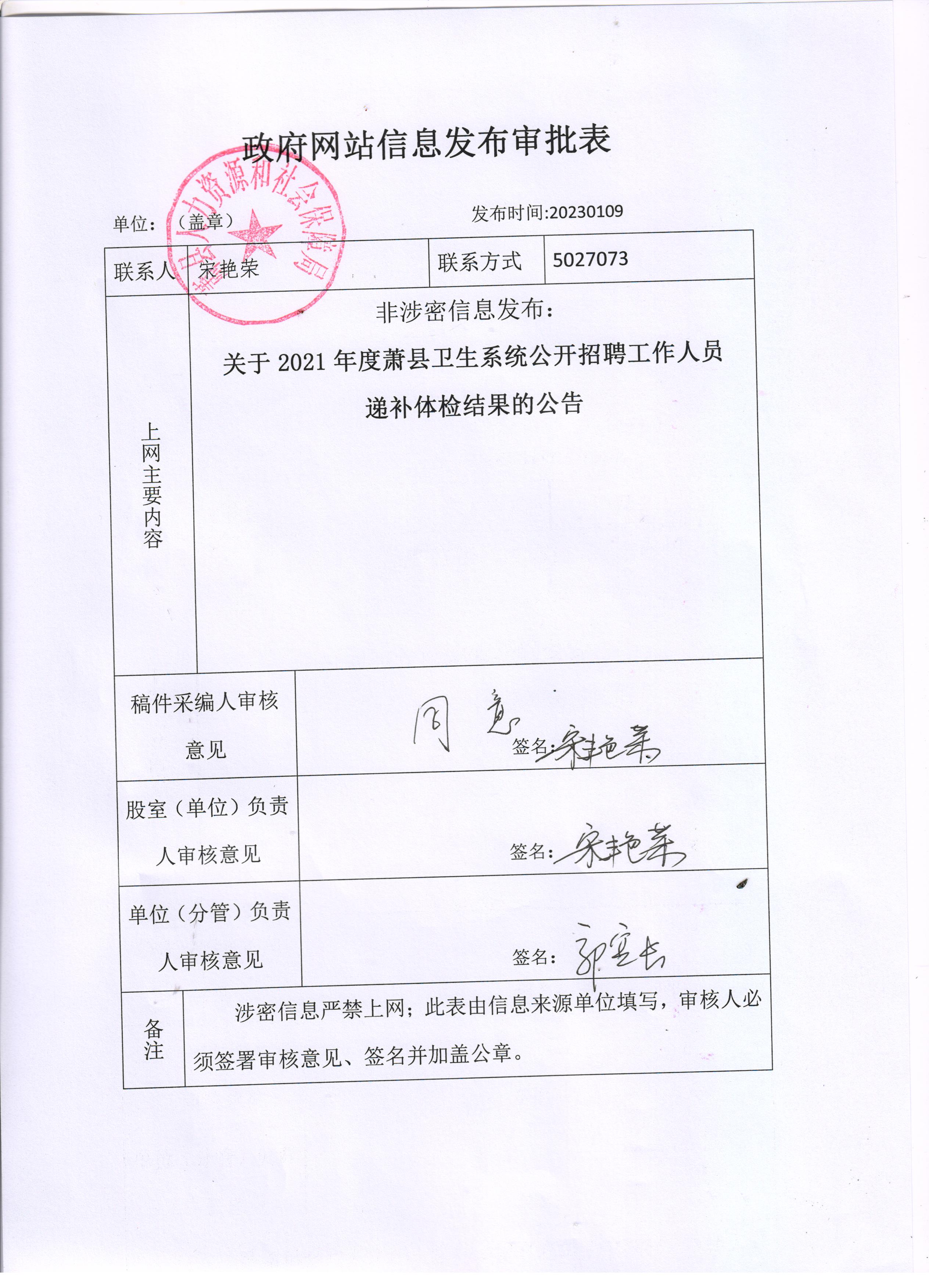 现将我县2021年度beat365官方网站正规_365bet注册送奖金_bt365开户卫生系统公开招聘工作人员递补体检结果予以公布(见附件)。